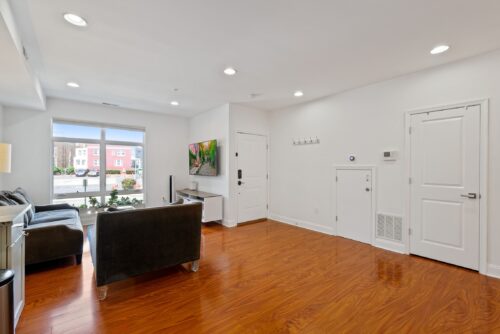 - Open living area with 9′ ceilings, recessed lights and plenty of space for entertaining