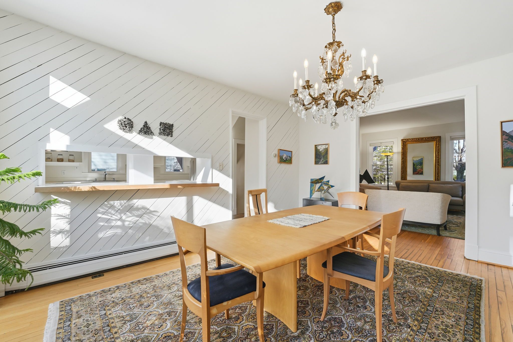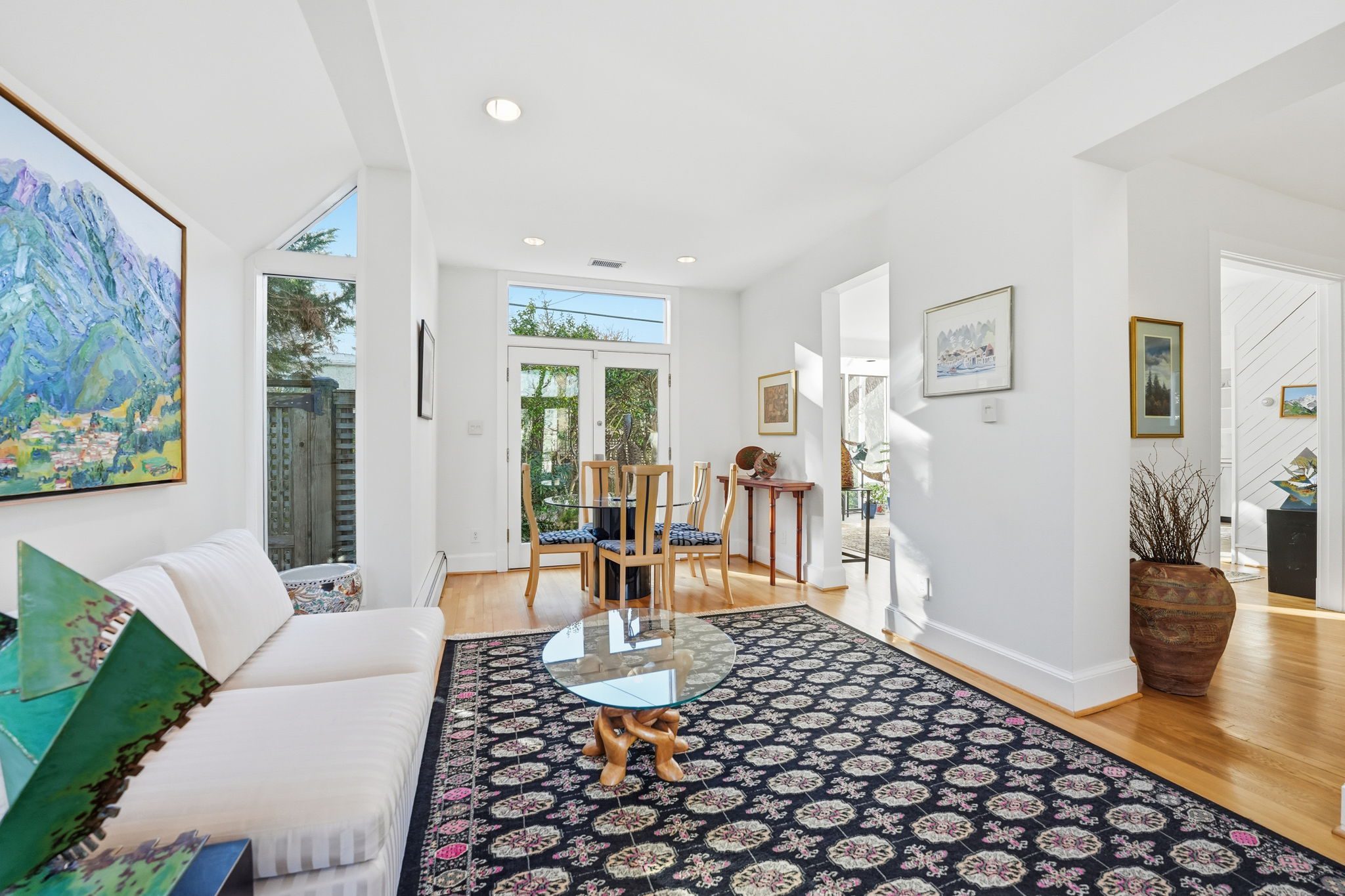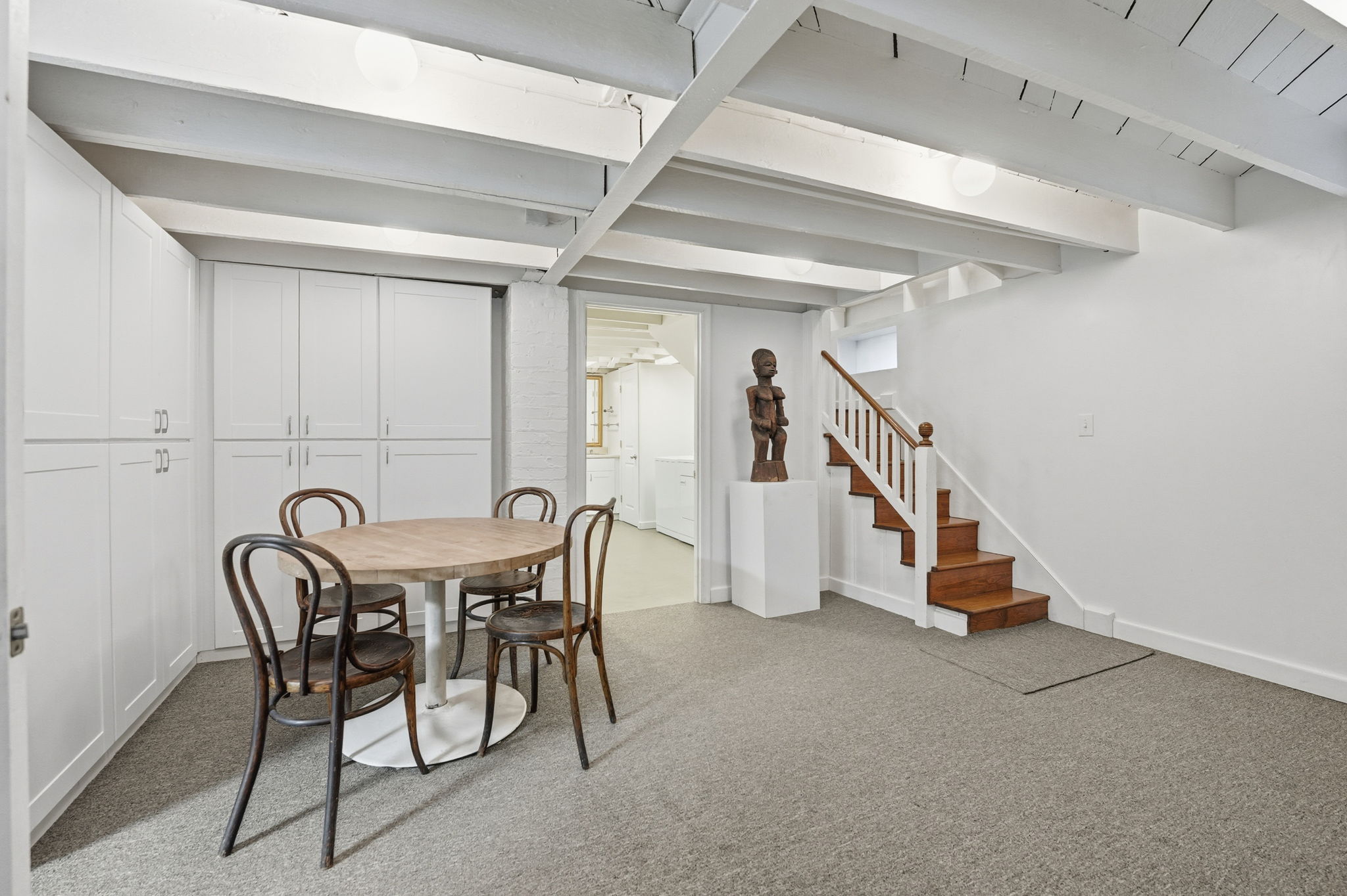 - Expansive dining room filled with southern light and a wall of glass overlooking the rear garden