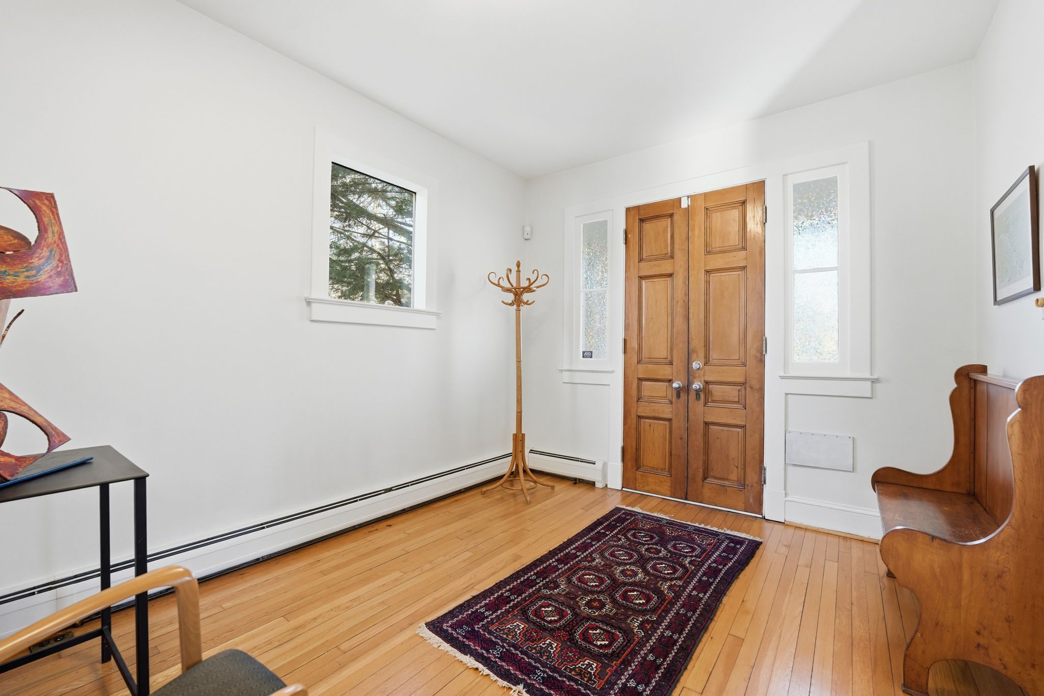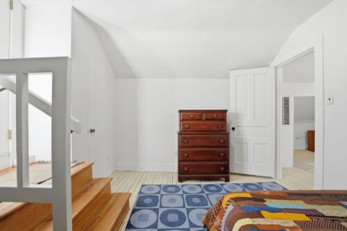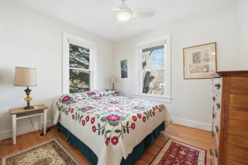 - Sun-filled primary suite with large bathroom and dressing area featuring four closets