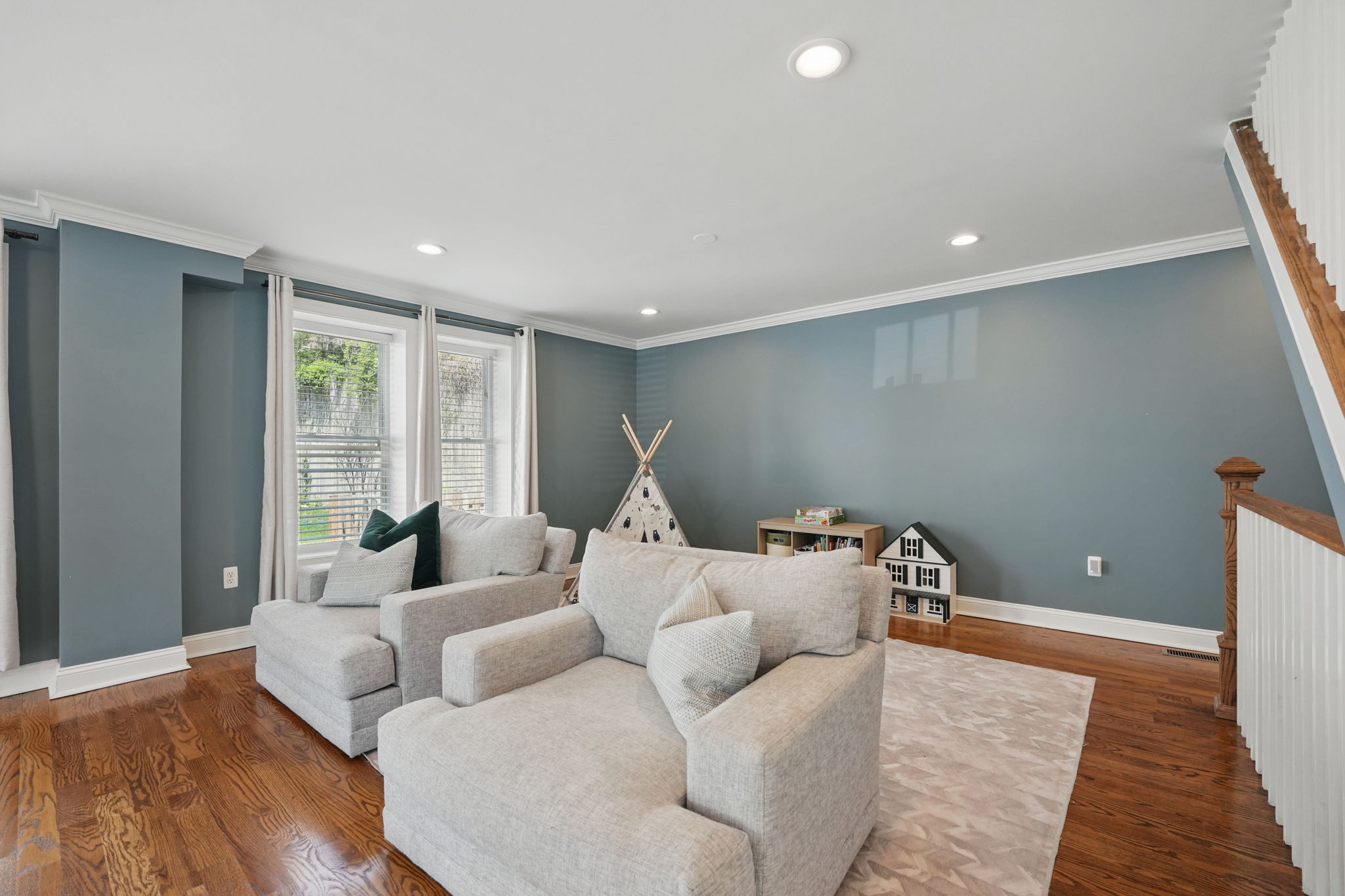 - Cozy family room perfect for movie nights or entertaining